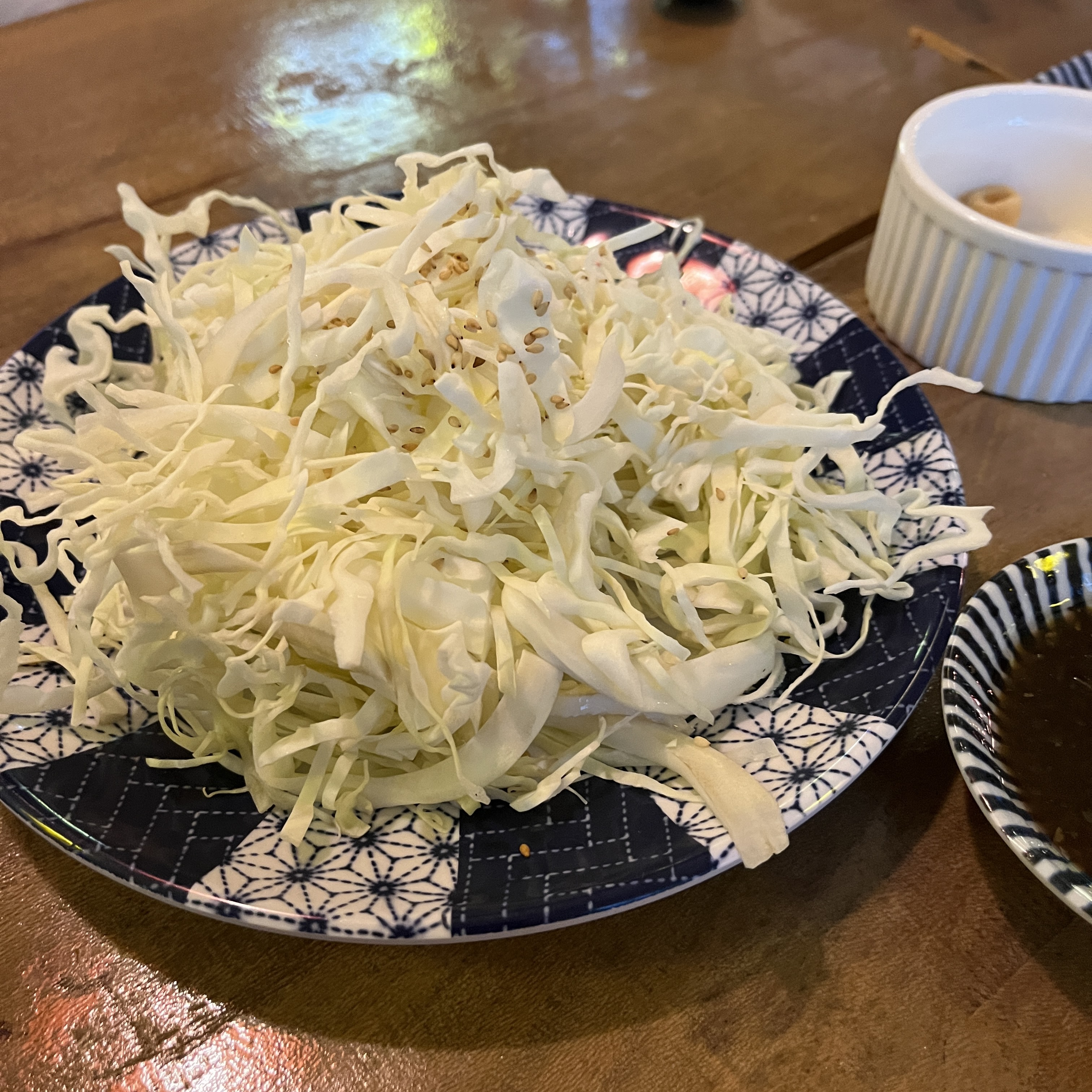 쿠시카츠, 오사카나베, 양배추샐러드, 나폴리탄스파게티 시켰습니다.