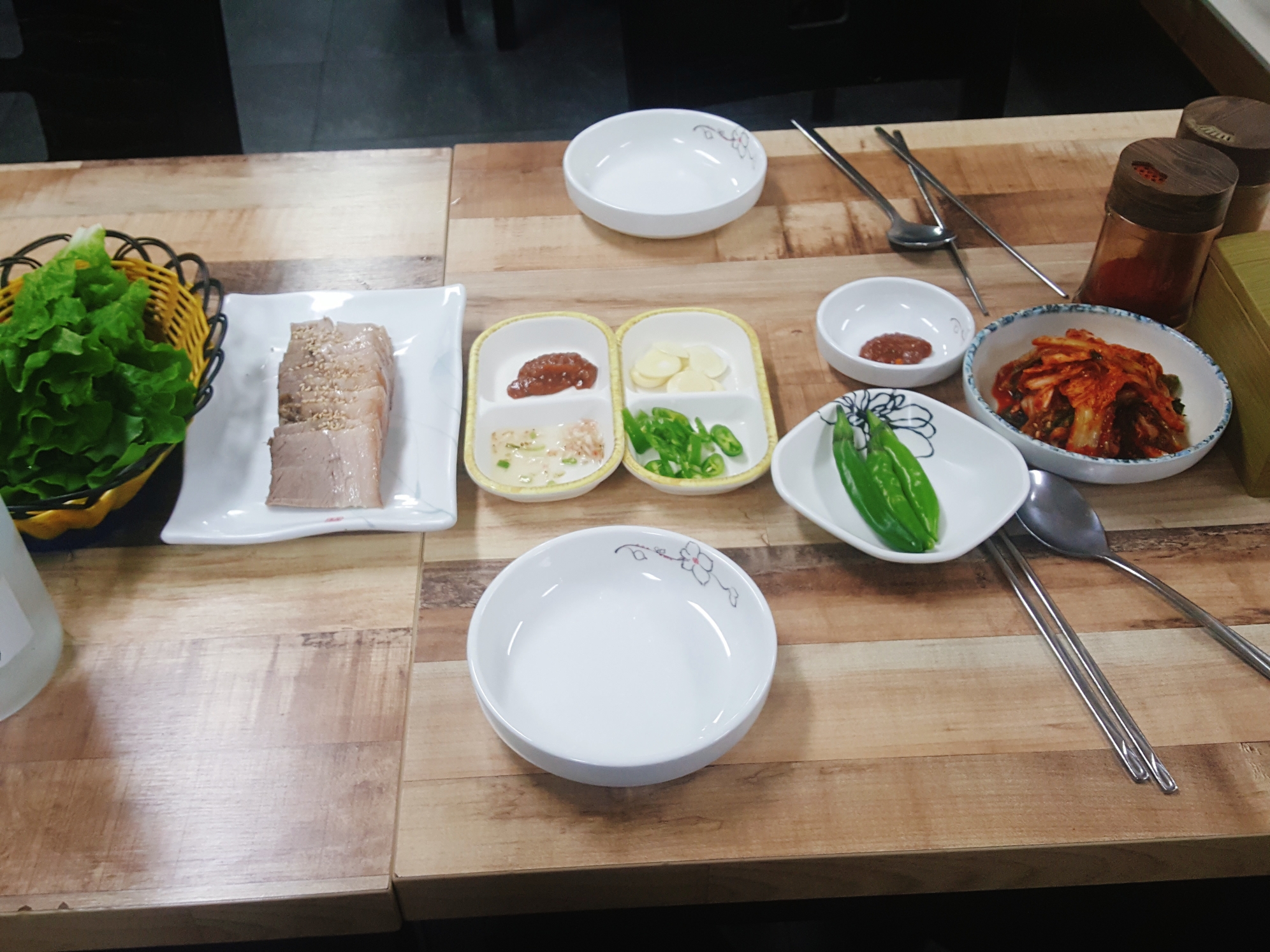 밑반찬은 김치, 마늘, 고추, 쌈장, 새우젖 등을 주시는데, 여기서 중요한게 바로 저 '김치'입니다.