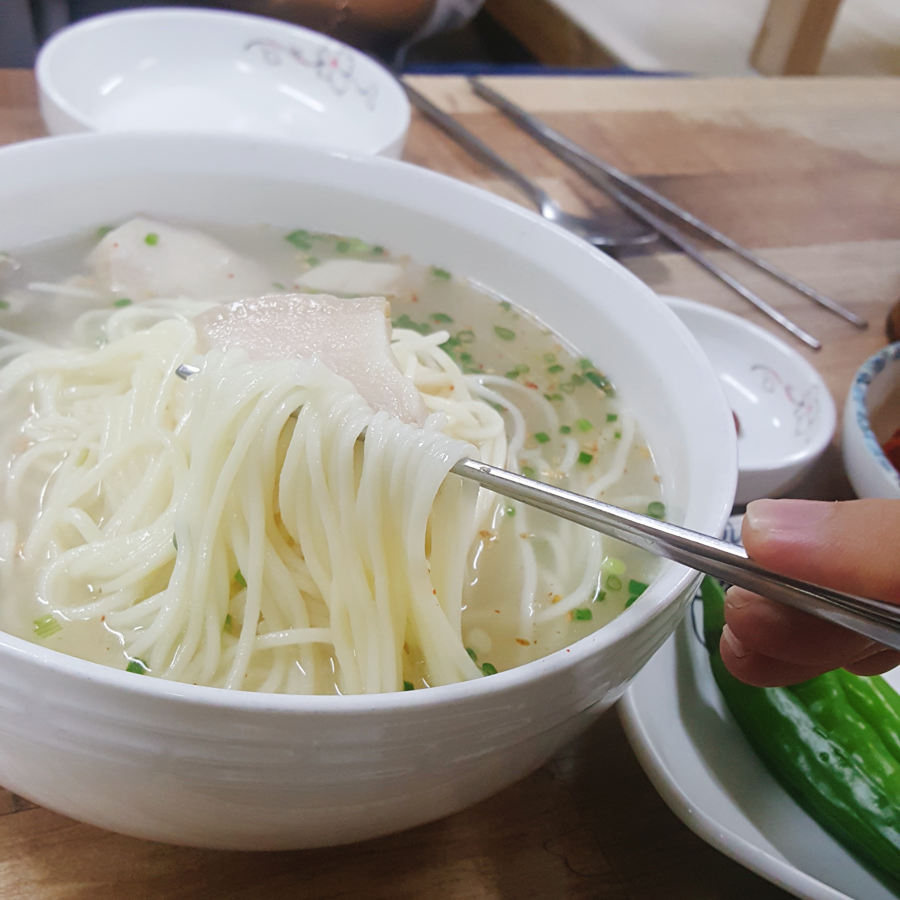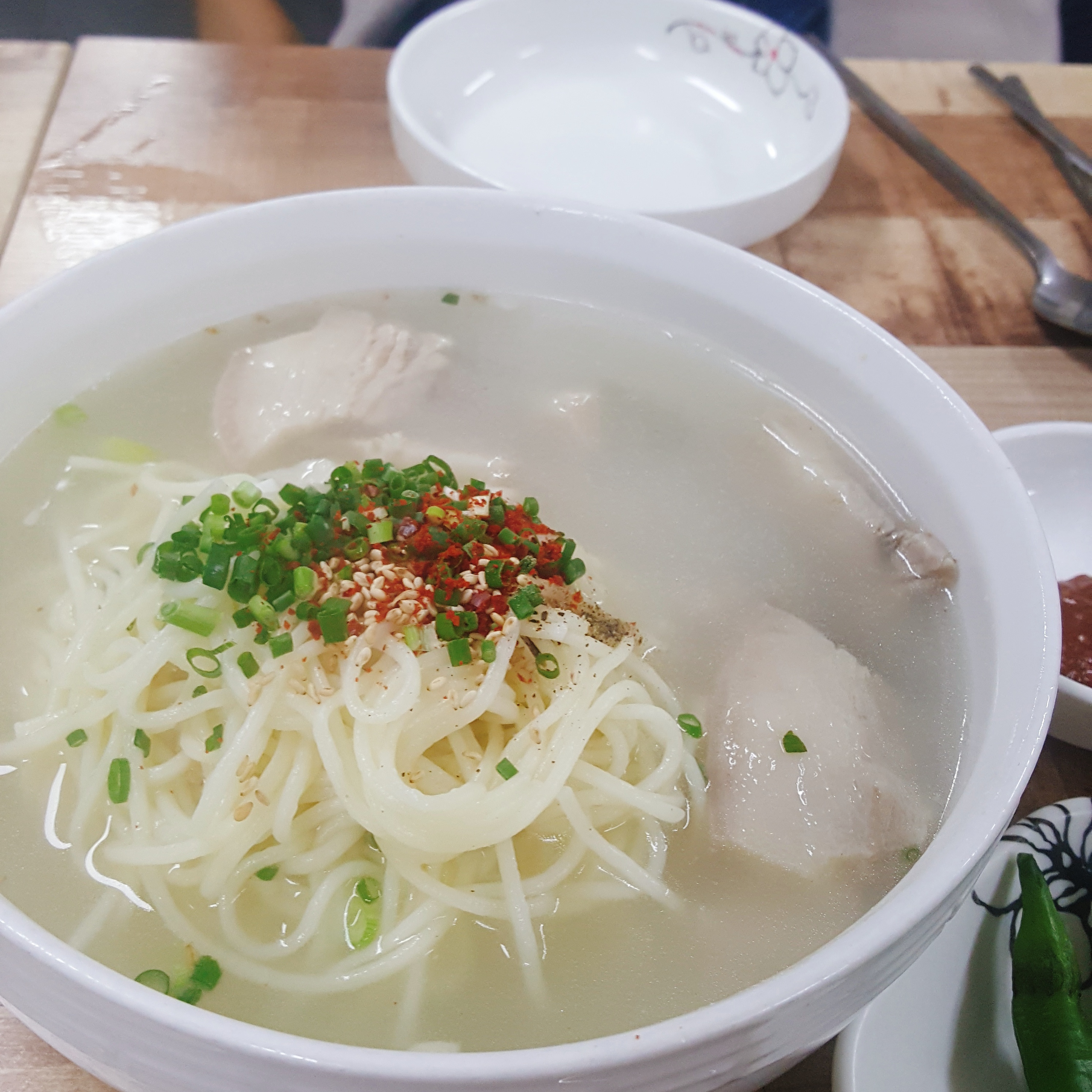 고기국물이 아주 시원하게 잘 우려져 있습니다. 흔히 이런 국수 맛집에 가보면 아주 찐한 국물을 먹어볼 수 있는데, 여기는 살짝 맑다는 느낌이 들 정도입니다.