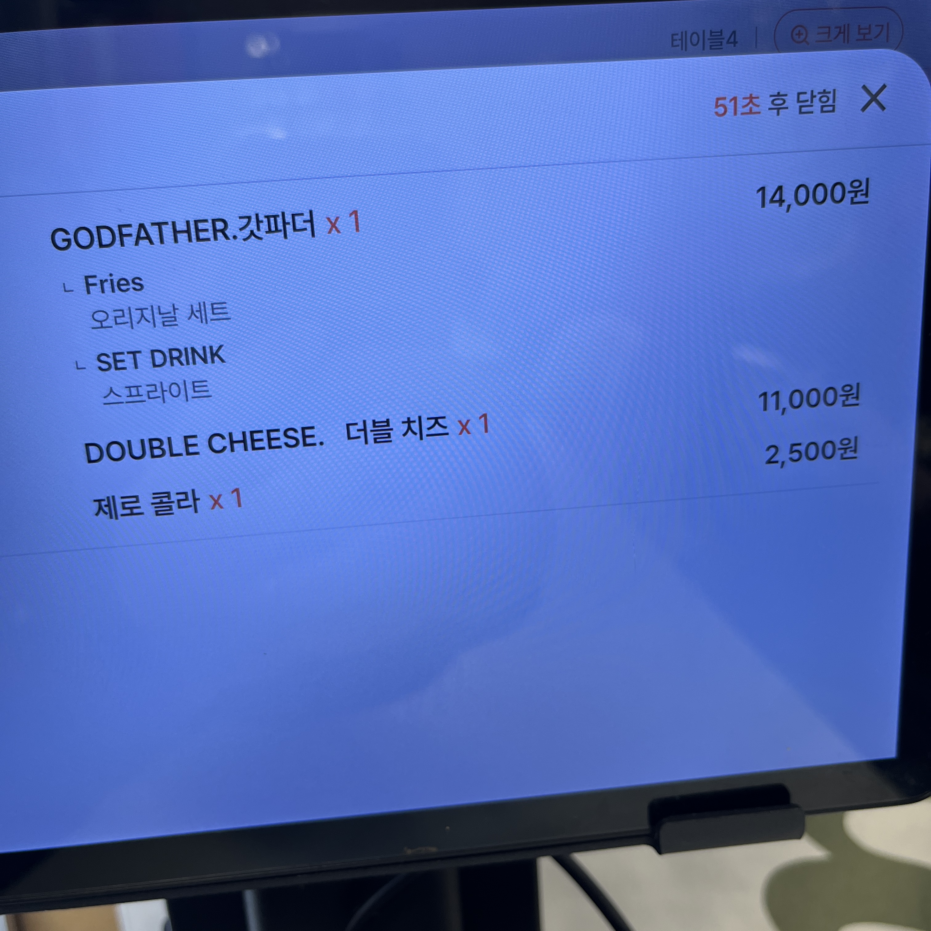 저는 지인과 더블치즈1개, 갓파더1개 시켰고,