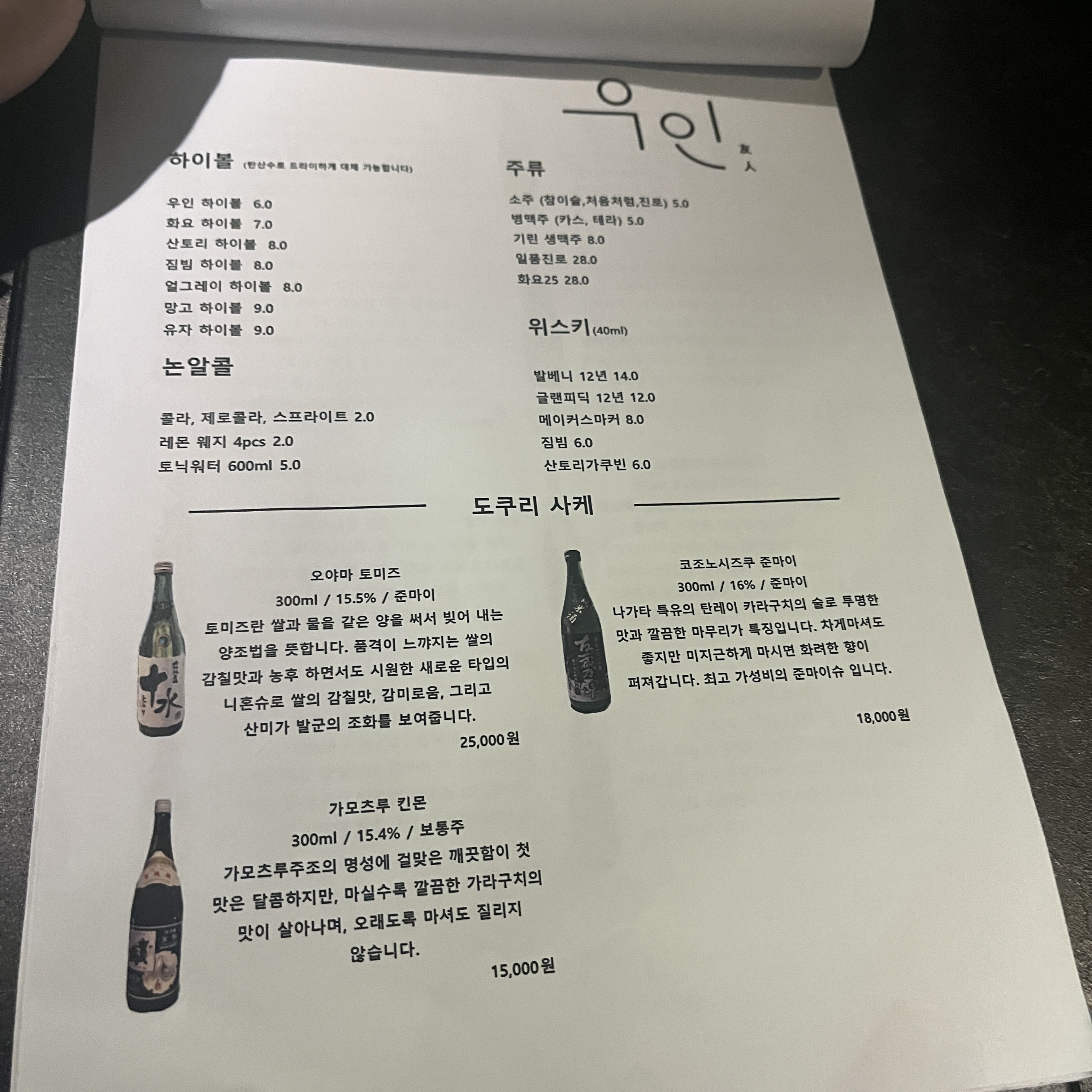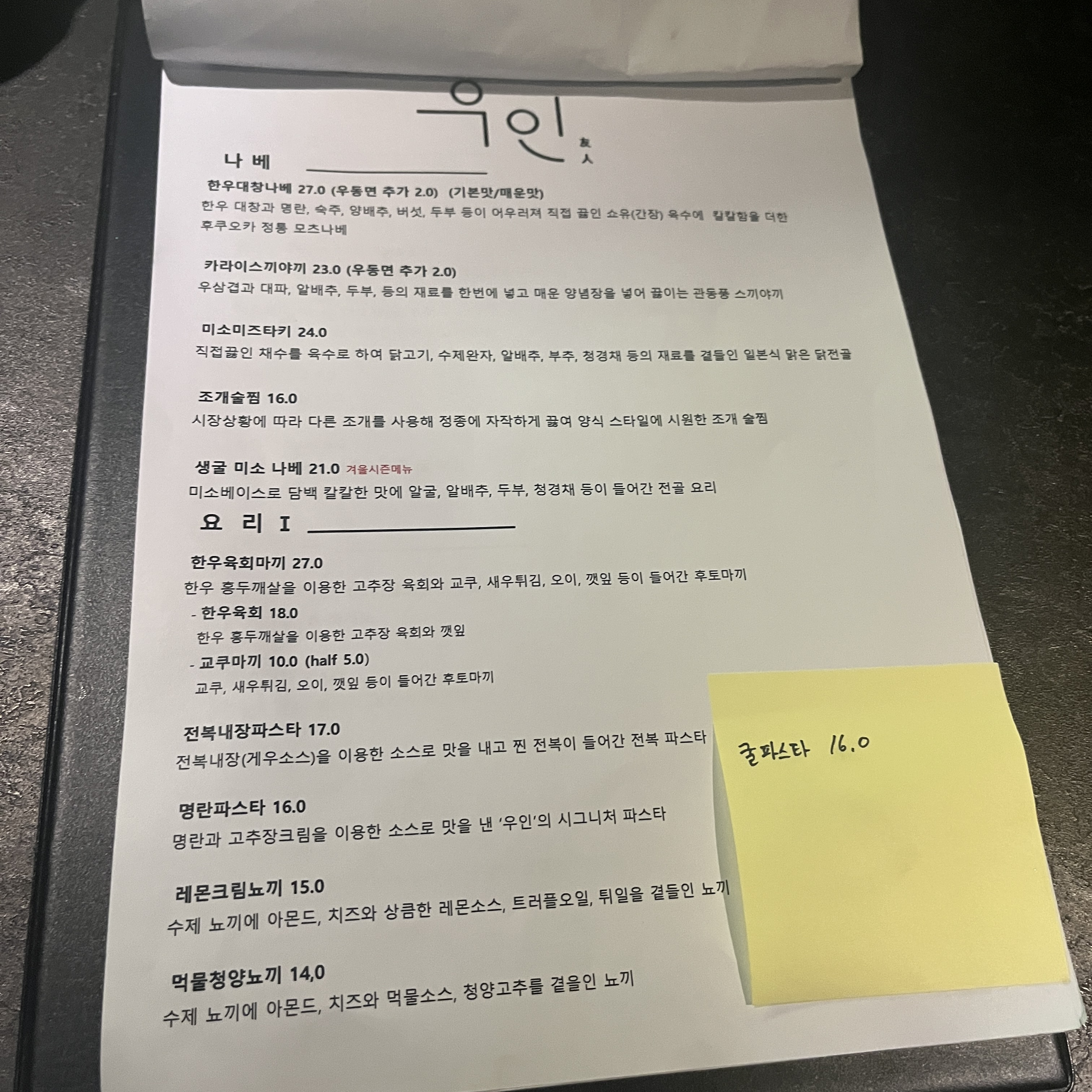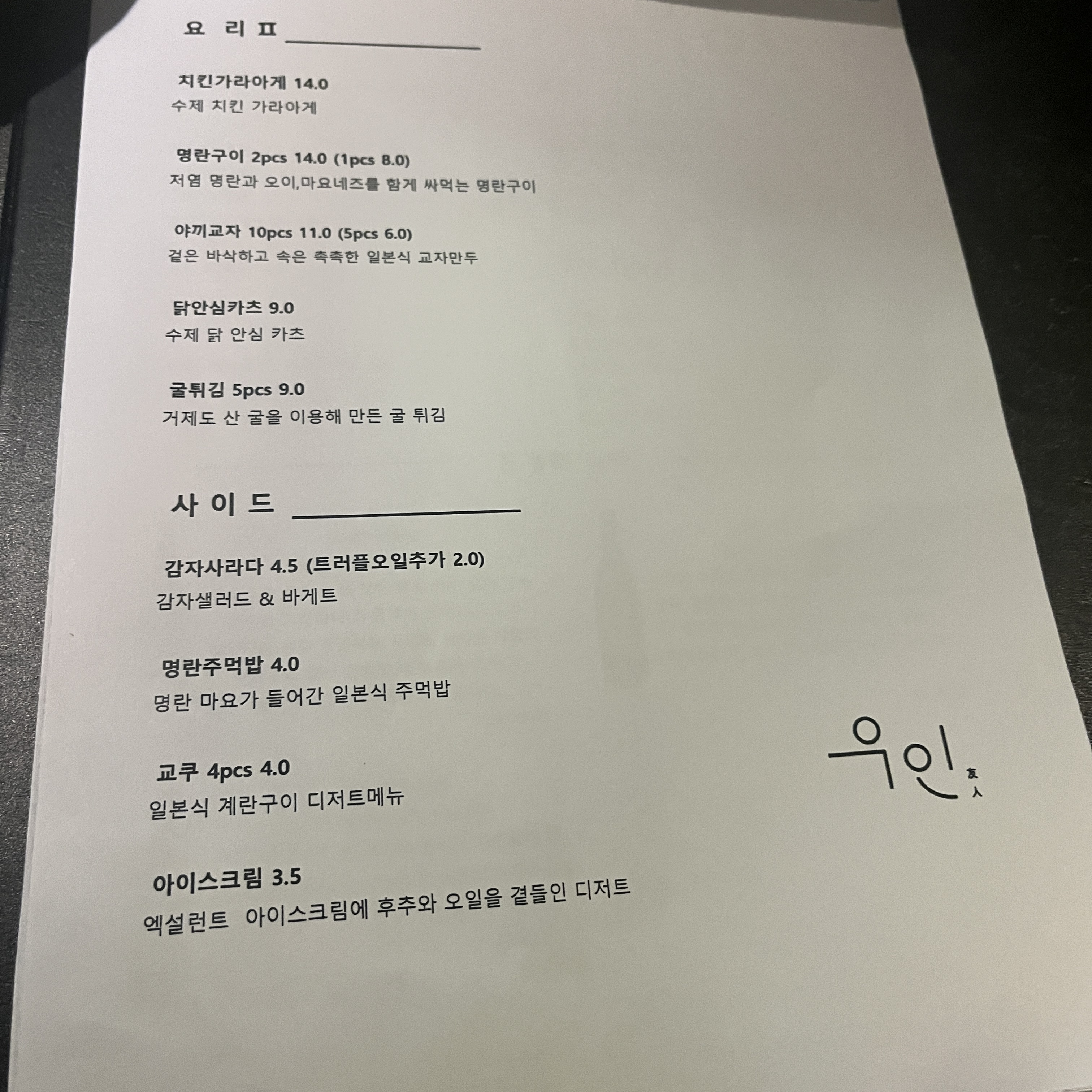 우인 메뉴입니다.