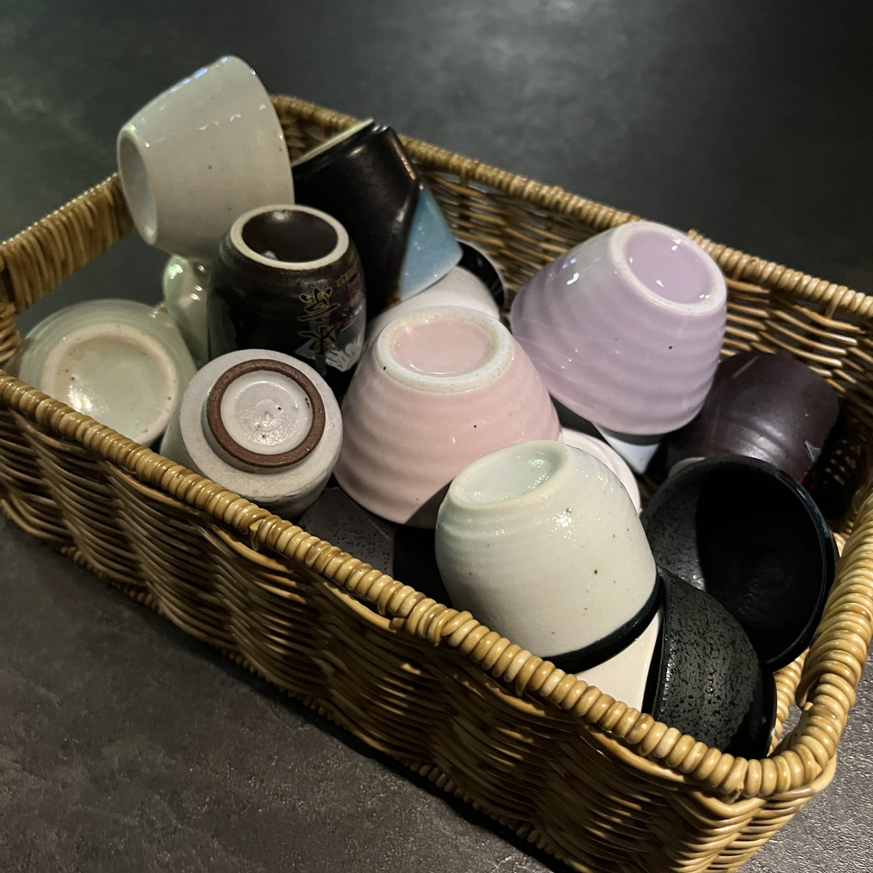 그리고, 사케를 시키면 요렇게 잔을 알아서 선택할 수 있게 하십니다.