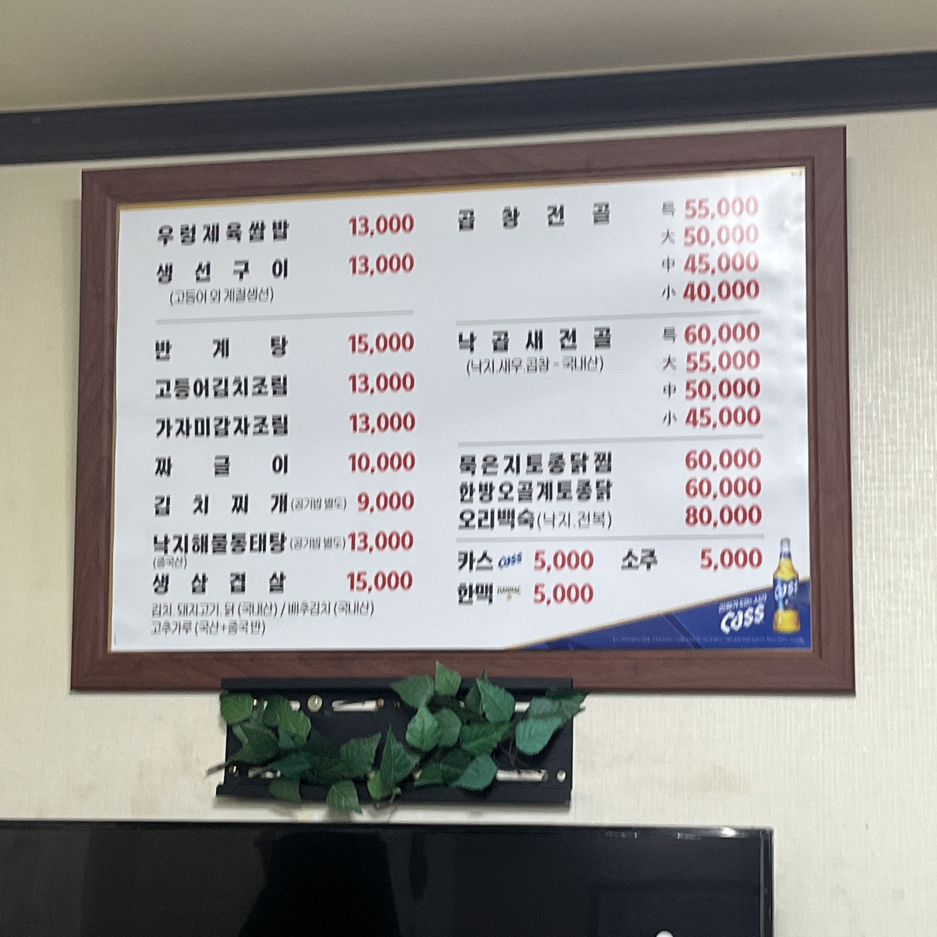 곱창전골 외에 낙곱새전골도 있고, 생선구이도 있고, 백숙도 있습니다.