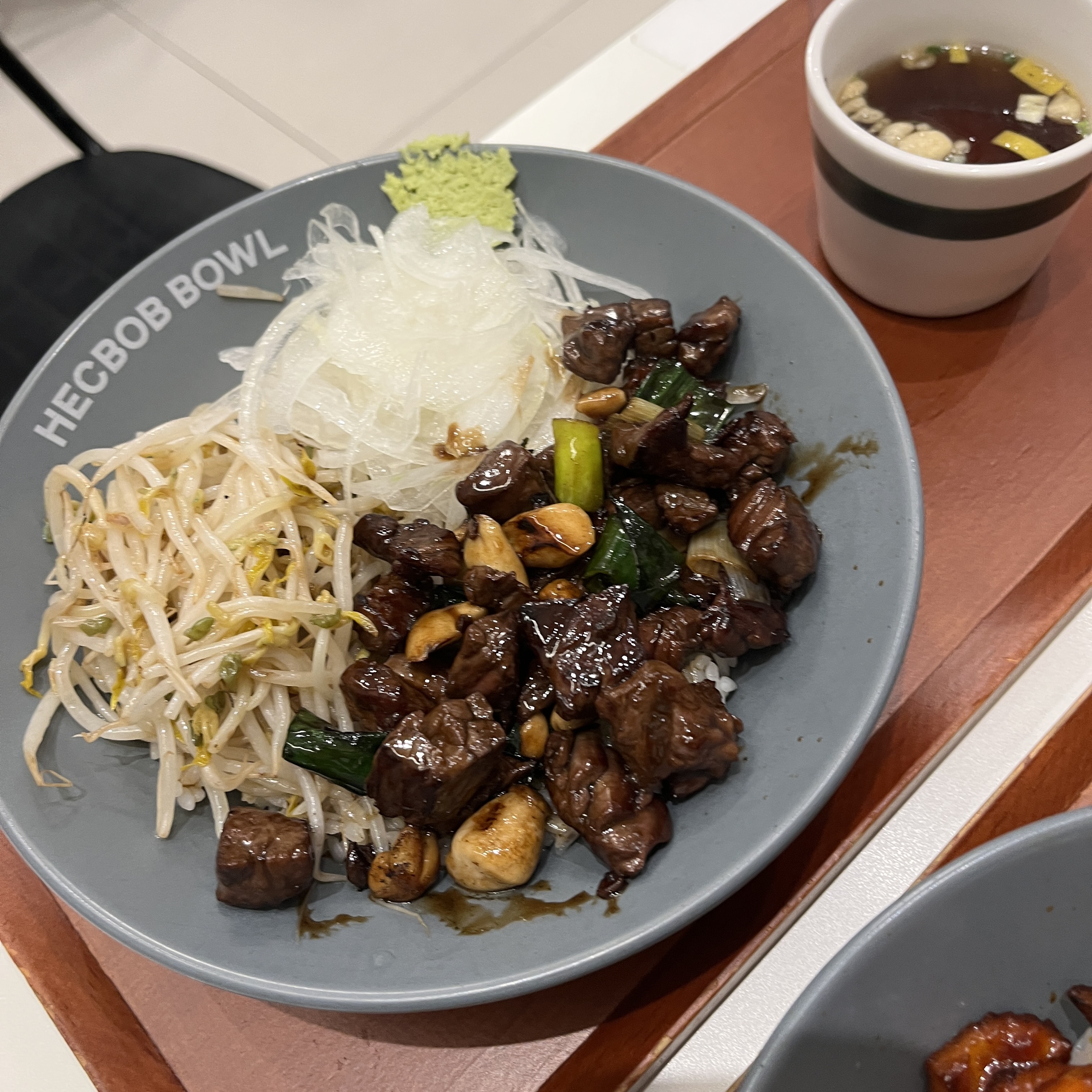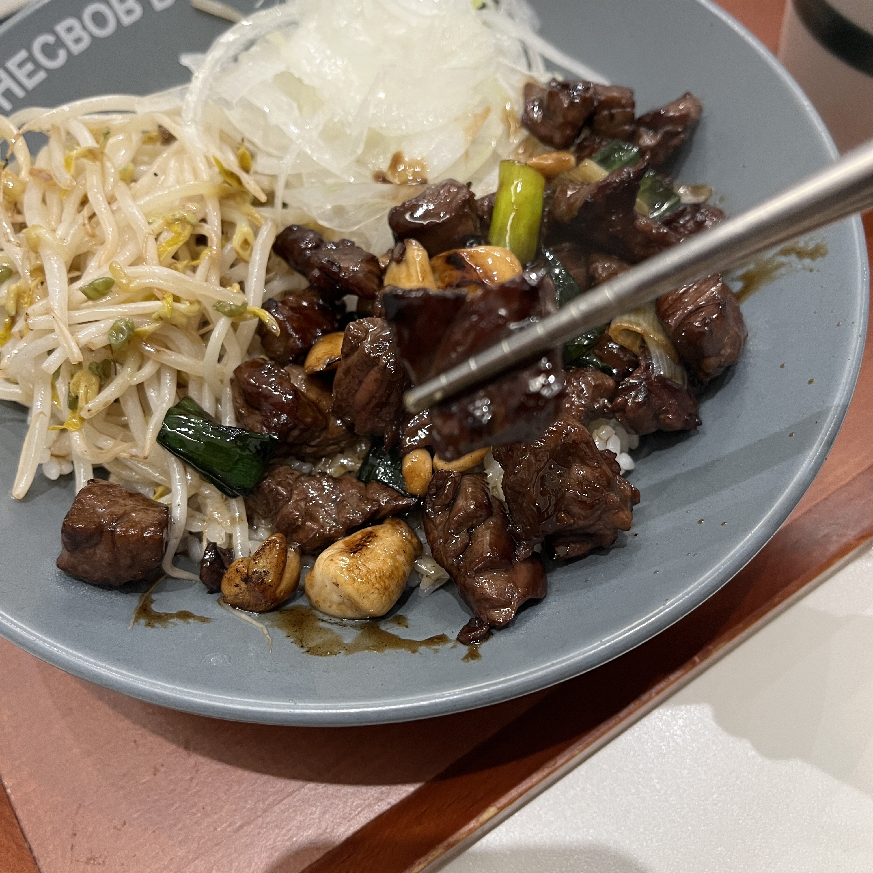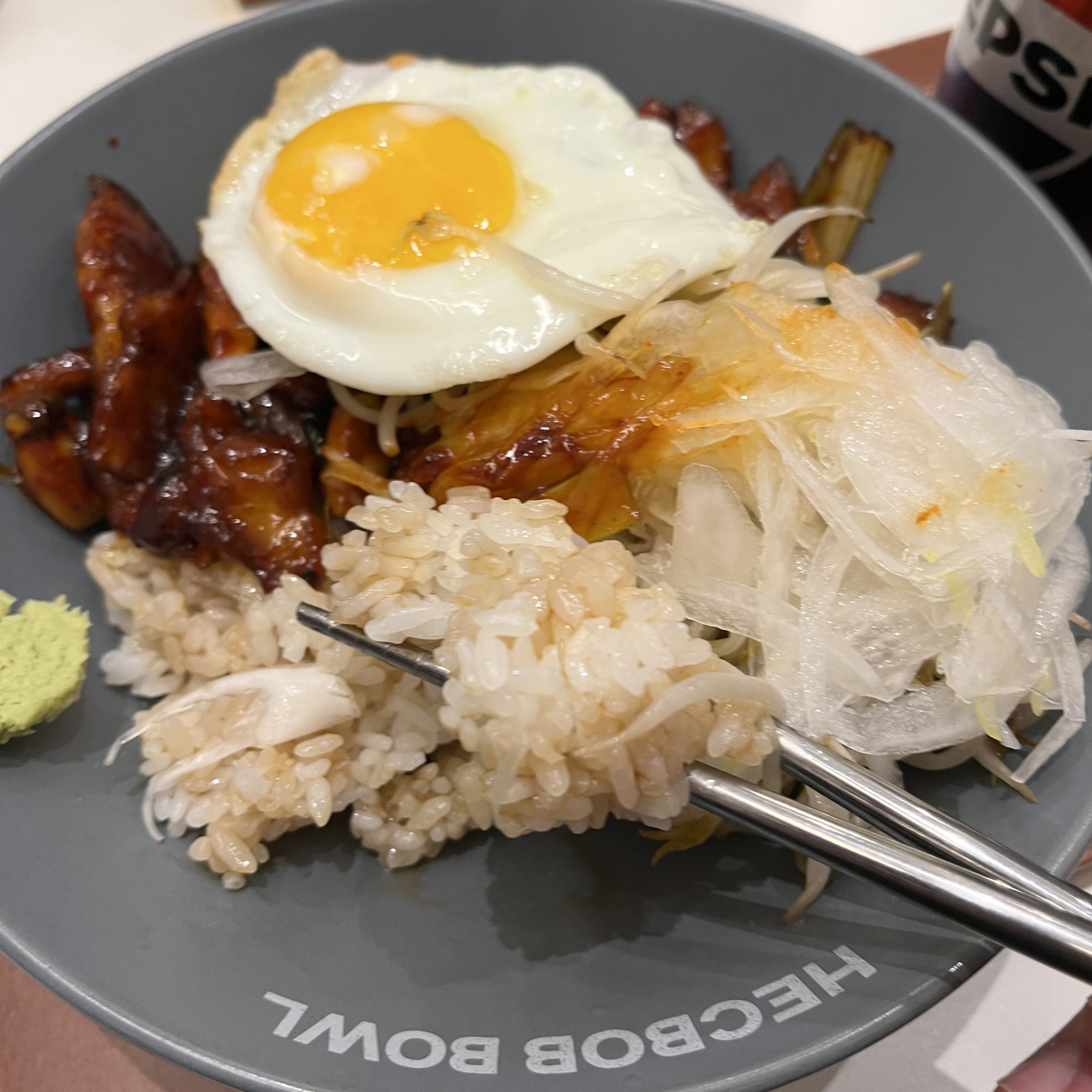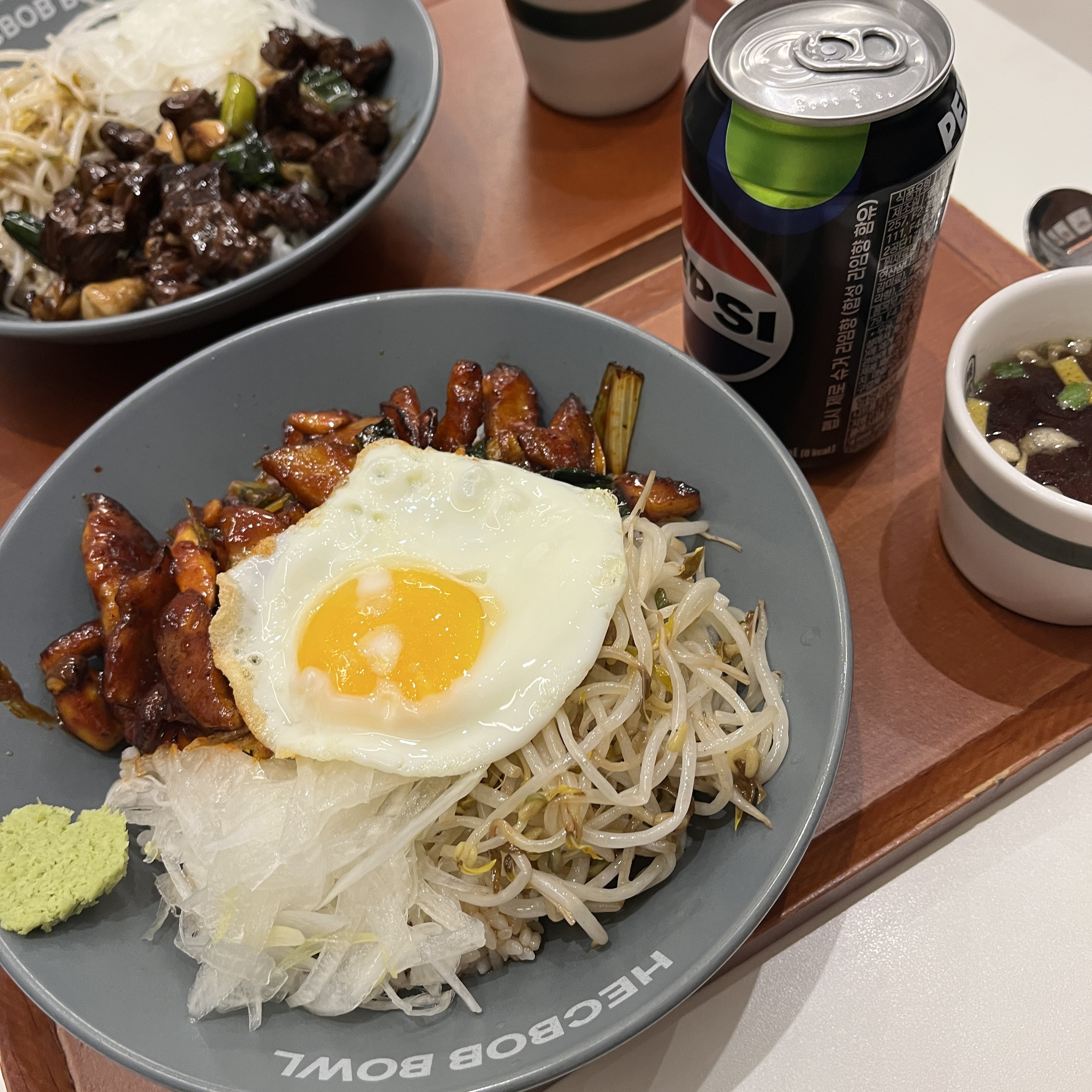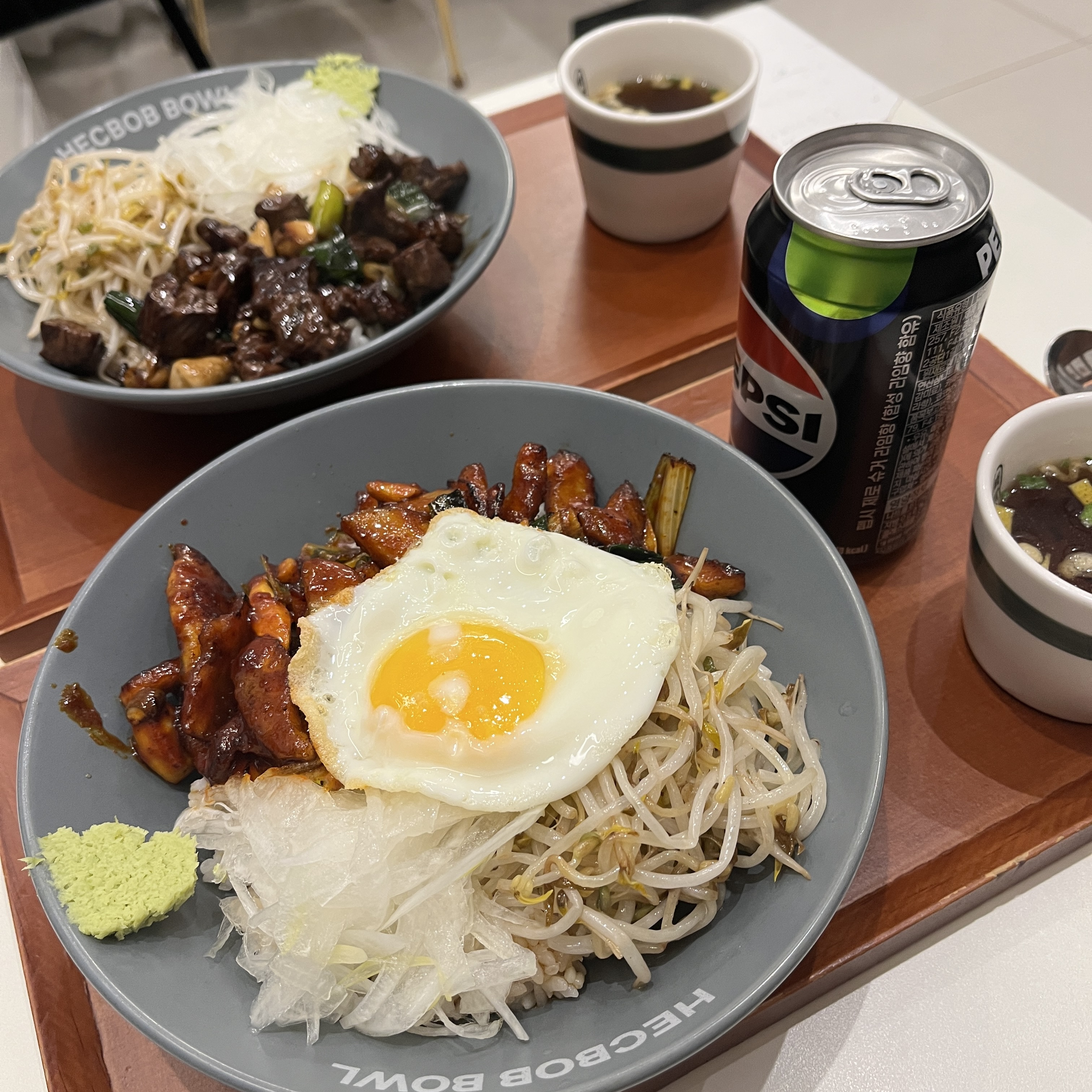 전 매운항정살덮밥, 지인은 큐브스테이크덮밥 먹었습니다.