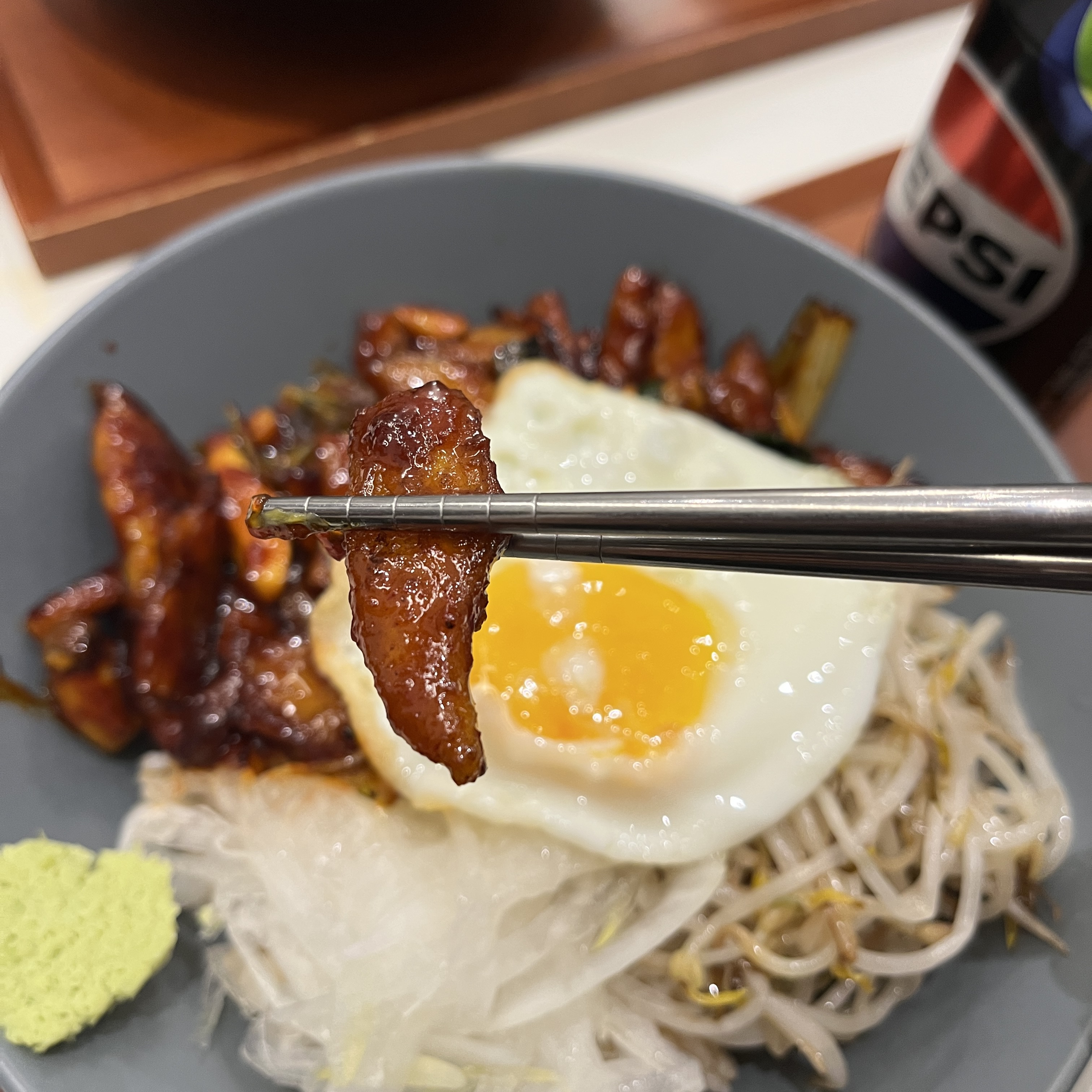구성은 밥, 숙주나물, 양파까진 똑같고 그 외에 얹어지는 메인메뉴가 달라지는 형식이었습니다.
