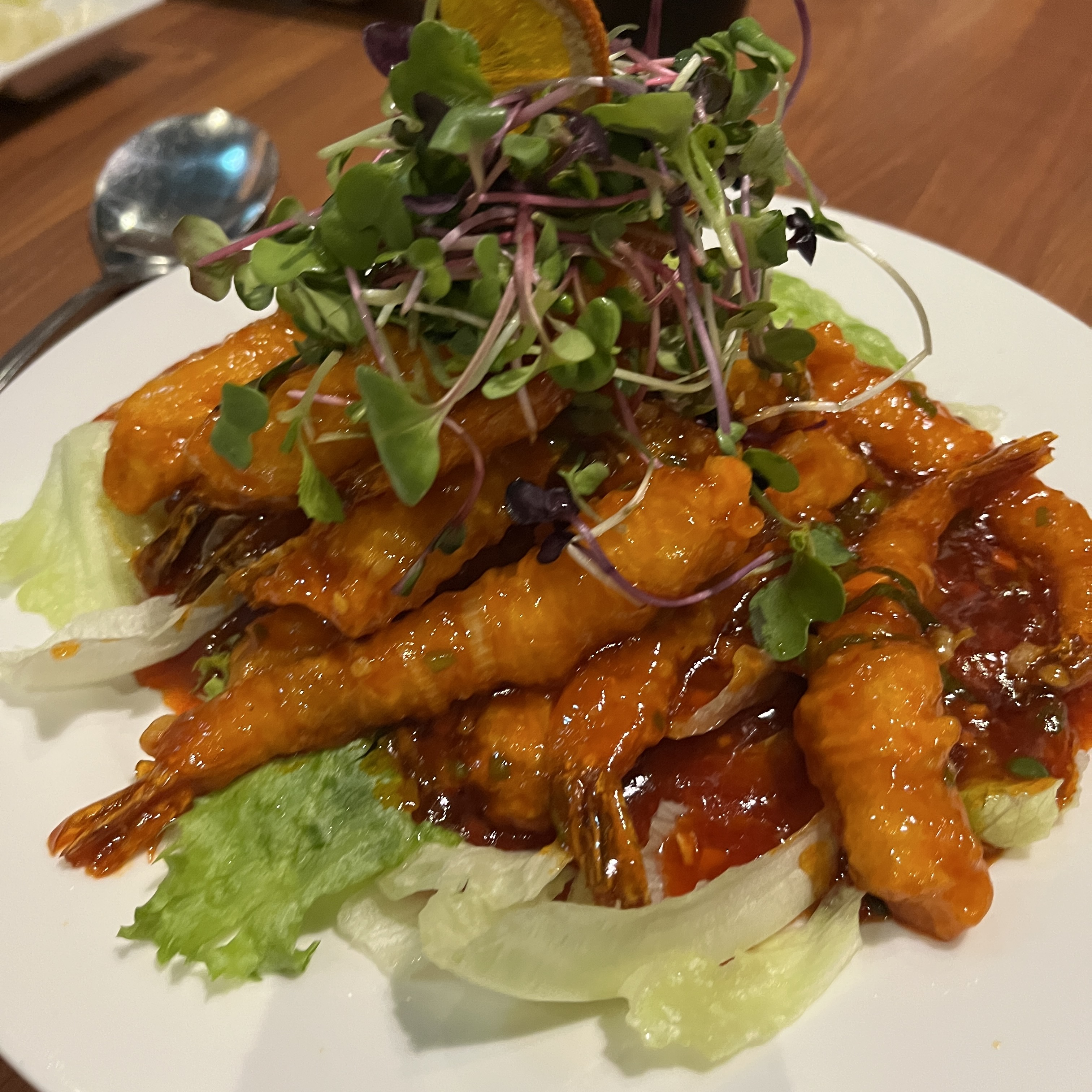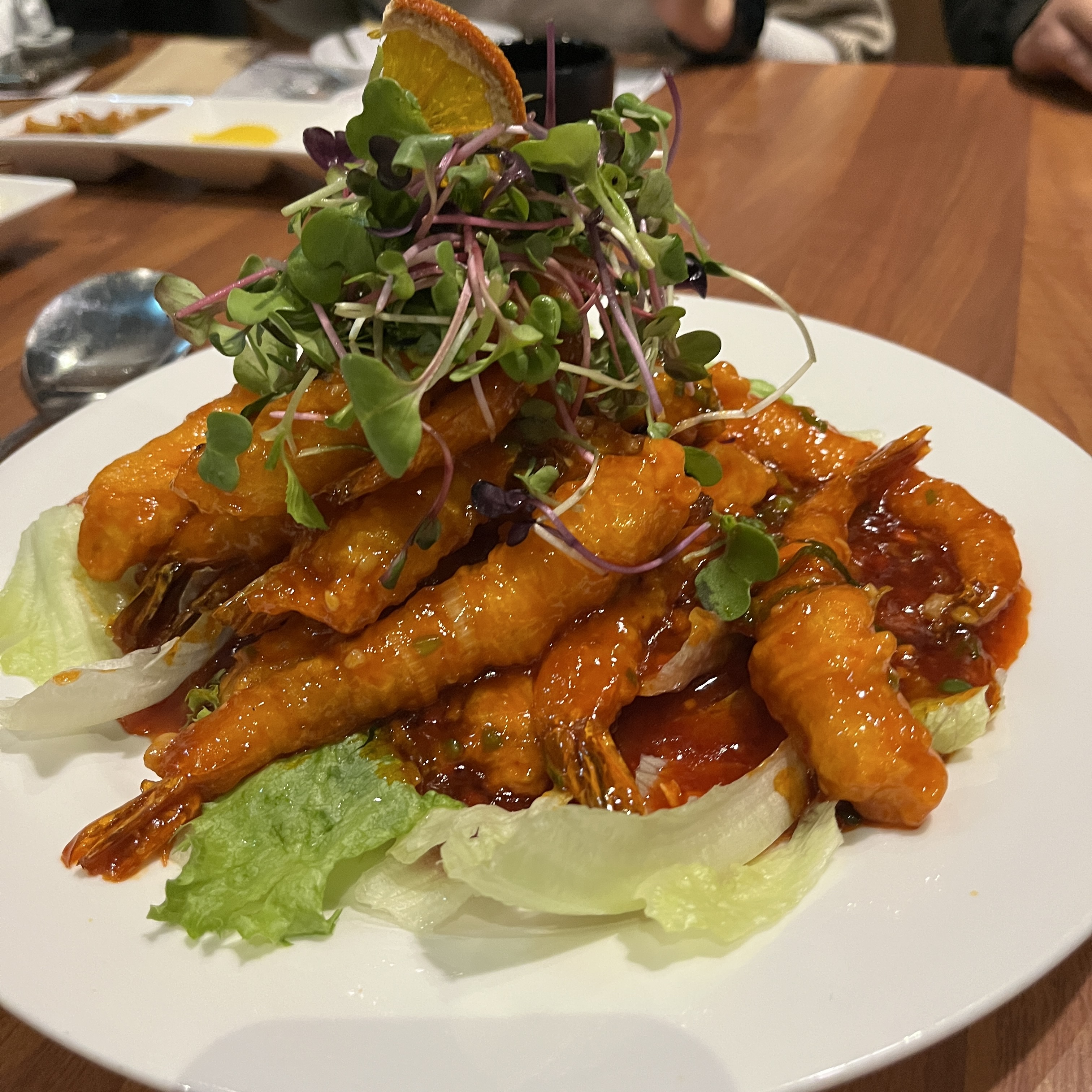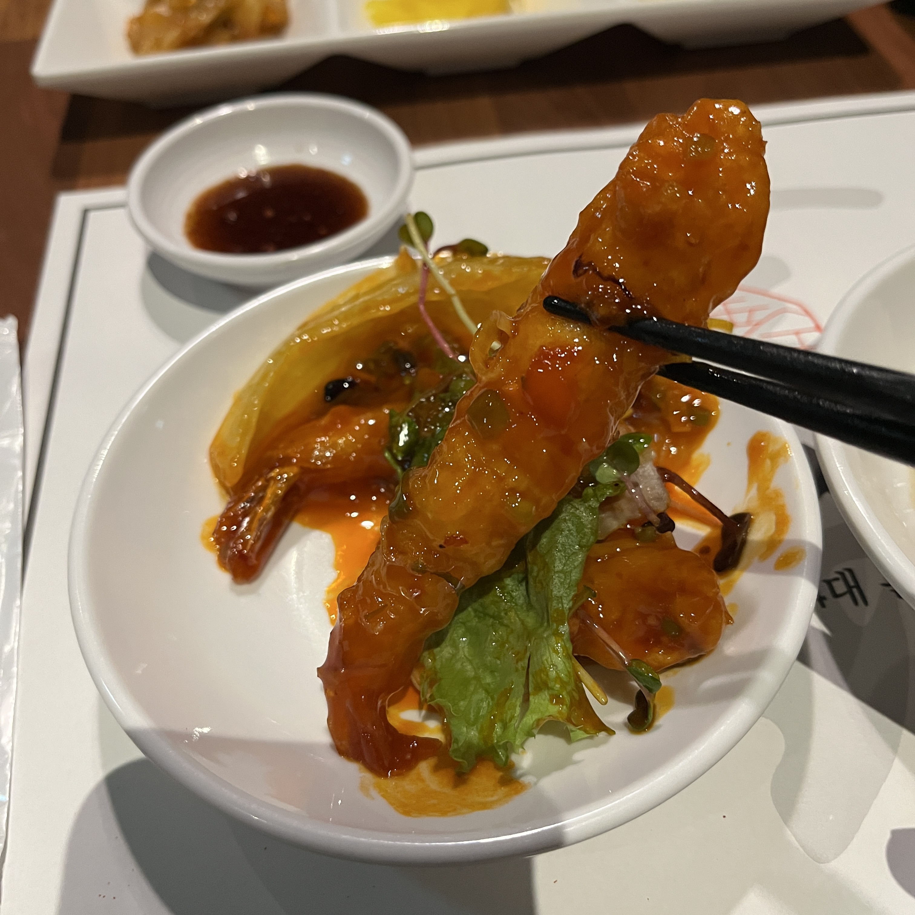 칠리소스도 듬뿍 묻어있지만, 신맛이 아주 강하지 않아서 새우 살 맛도 잘 느껴졌습니다.