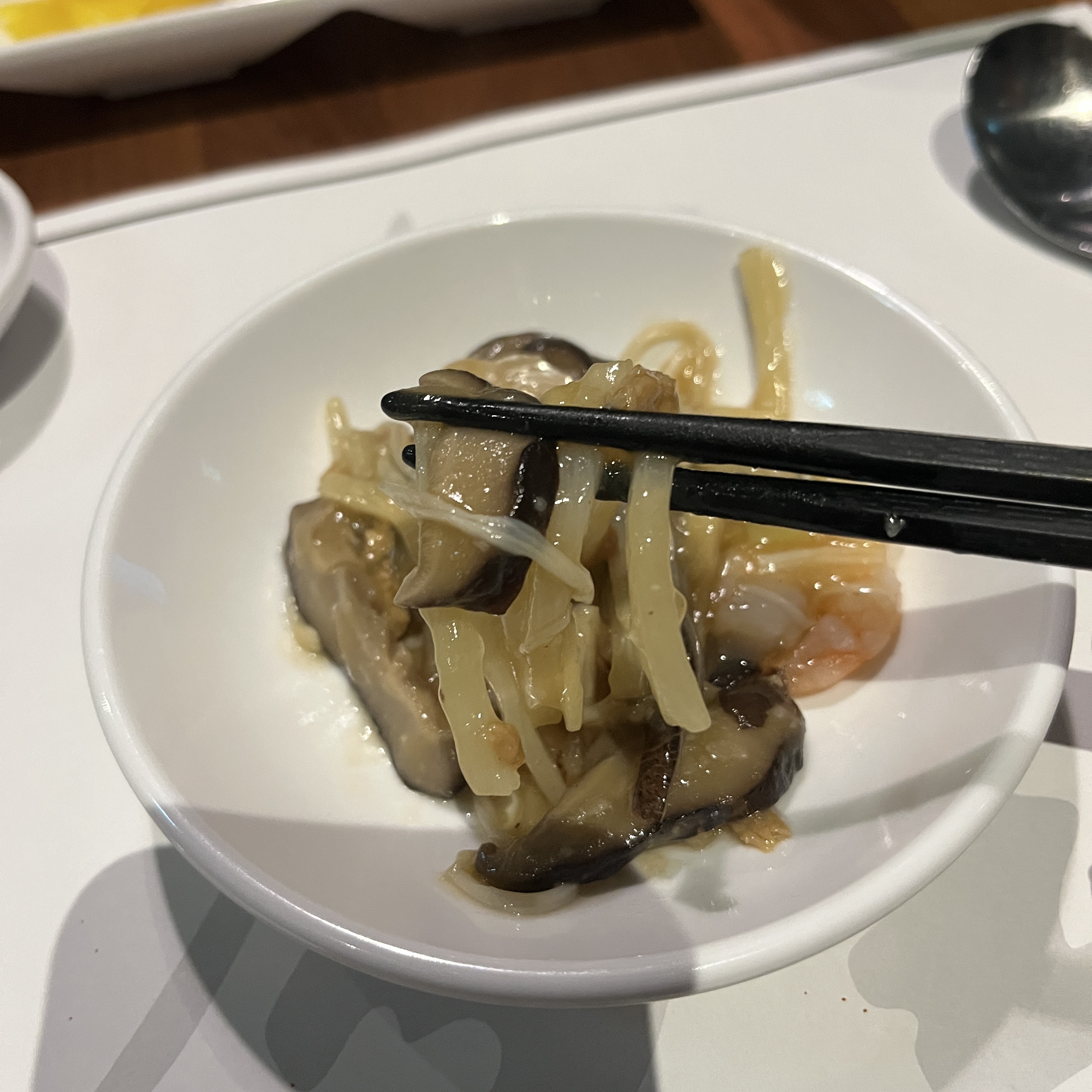 죽순의 씹히는 식감과 표고의 부드러운 식감이 조화로웠고,
