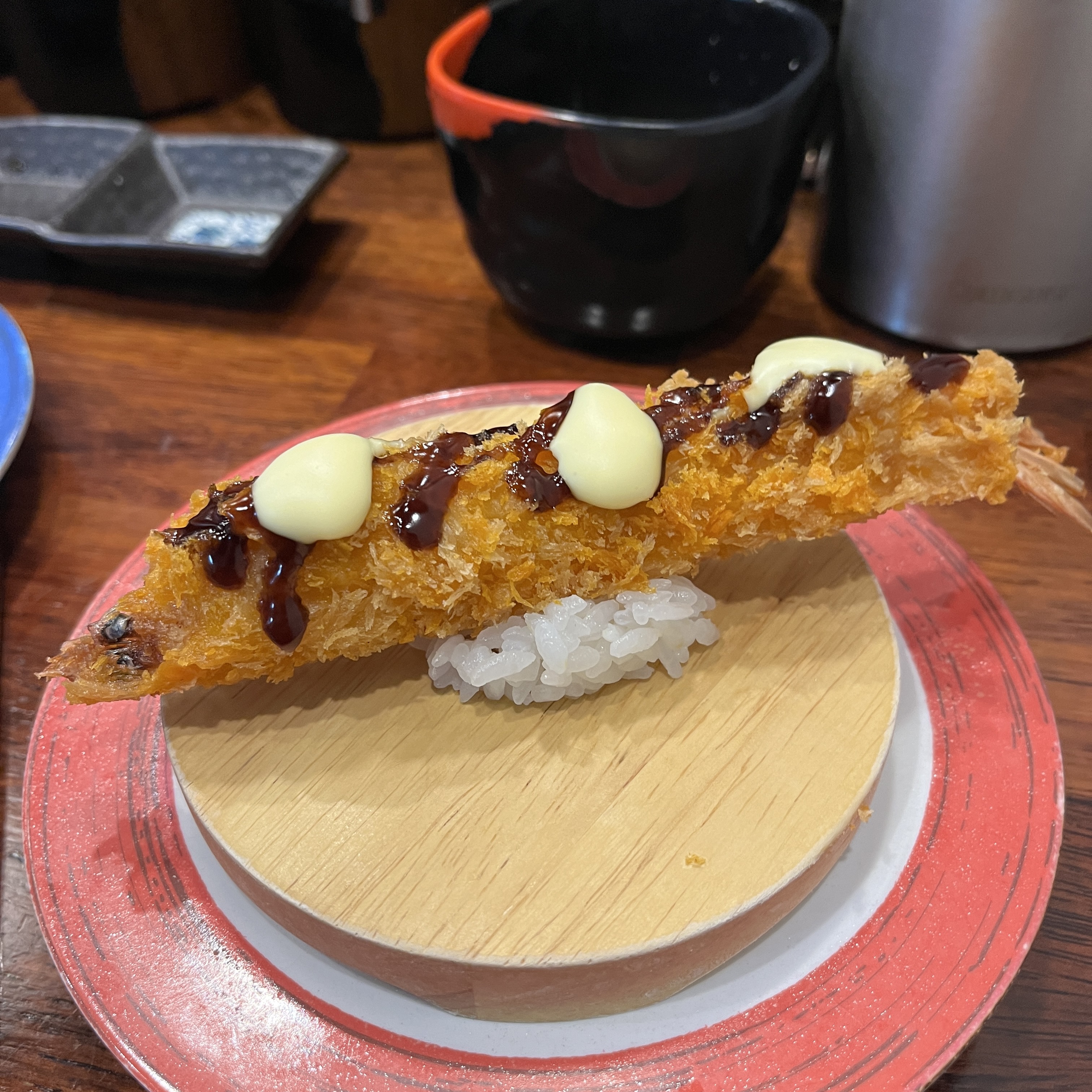 이렇게 커다란 새우튀김이 올라간 초밥도 있었어요 ㅎㅎ