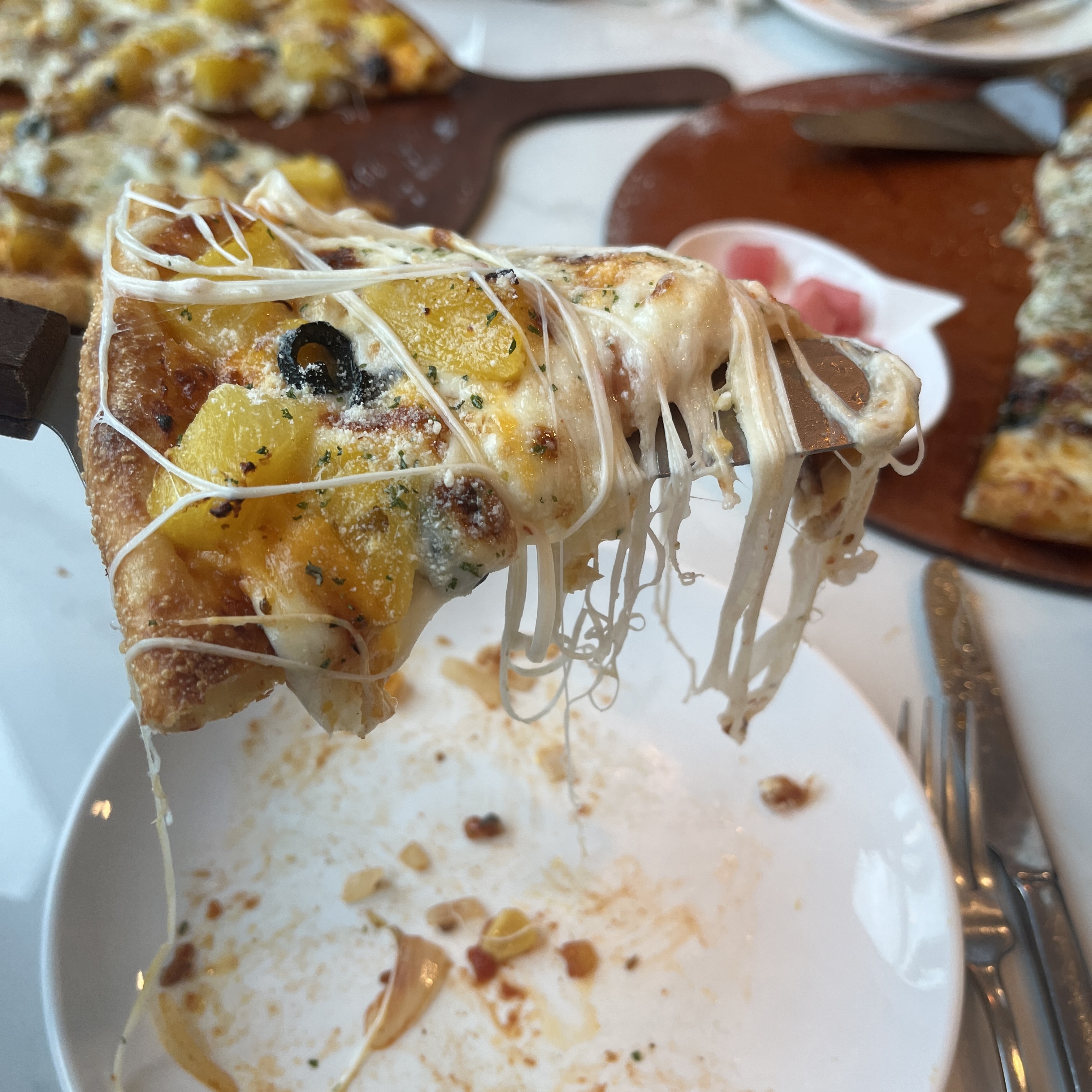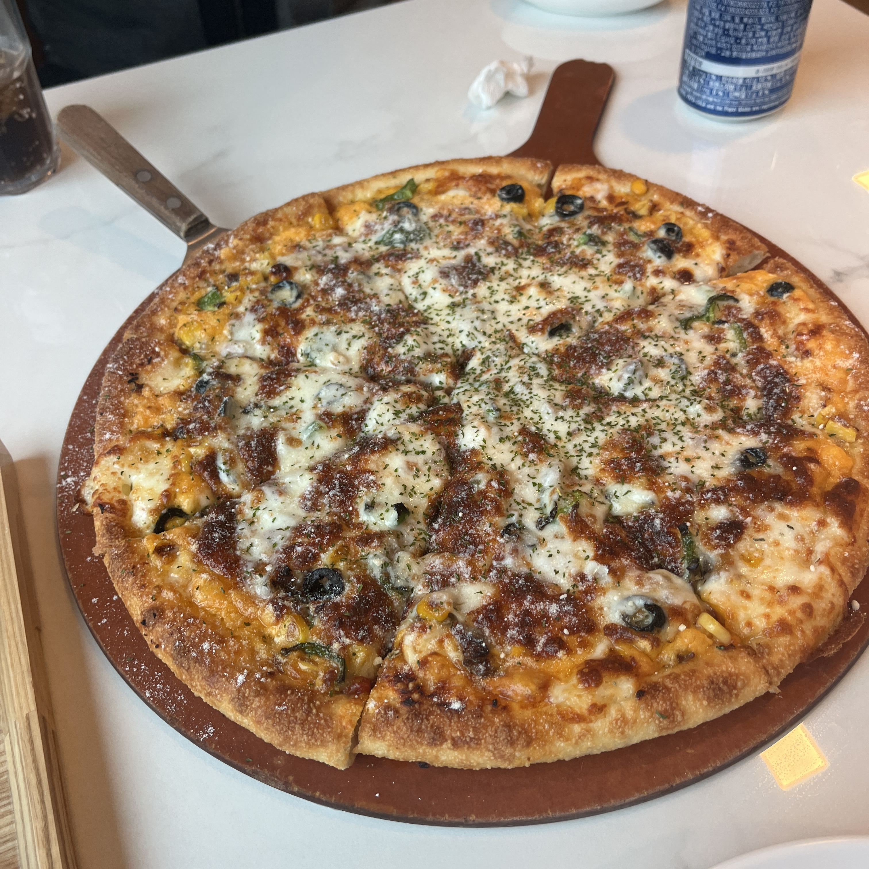 저게 치즈가 보통 양이 얹어져있는게 아니에요. 거의 치즈 폭탄이라고 해도 과언이 아닐 만큼 많은 양의 치즈가 얹어져있고, 그 치즈가 너무 고소하고 좋은 치즈여서 피자가 조금씩 사라질떄마다 매우 아쉬워집니다.