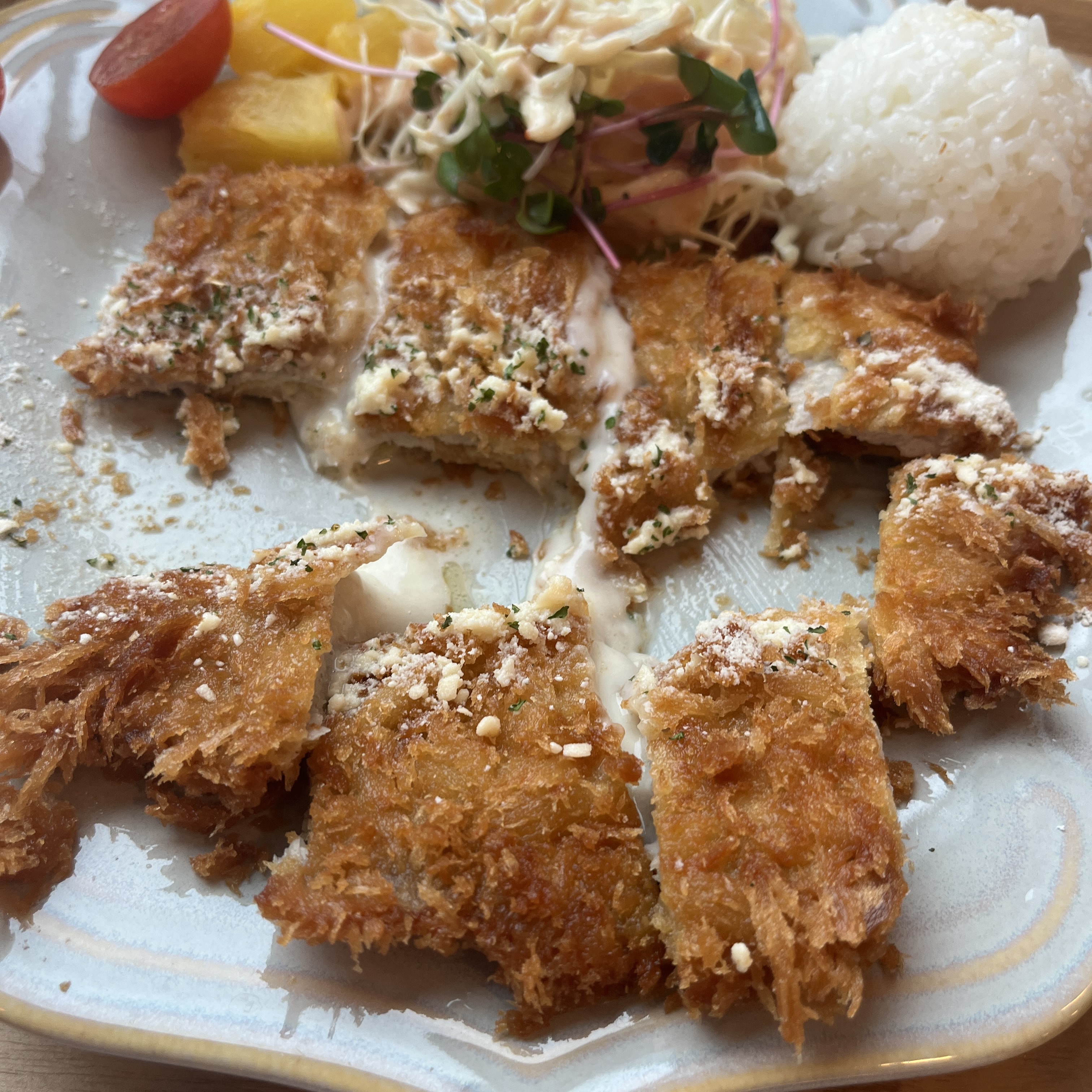 너무 신선하고 질 좋은 치즈입니다. 치즈의 꼬소함이 튀김의 느끼함까지 가려버리는 그런 치즈돈까스에요.