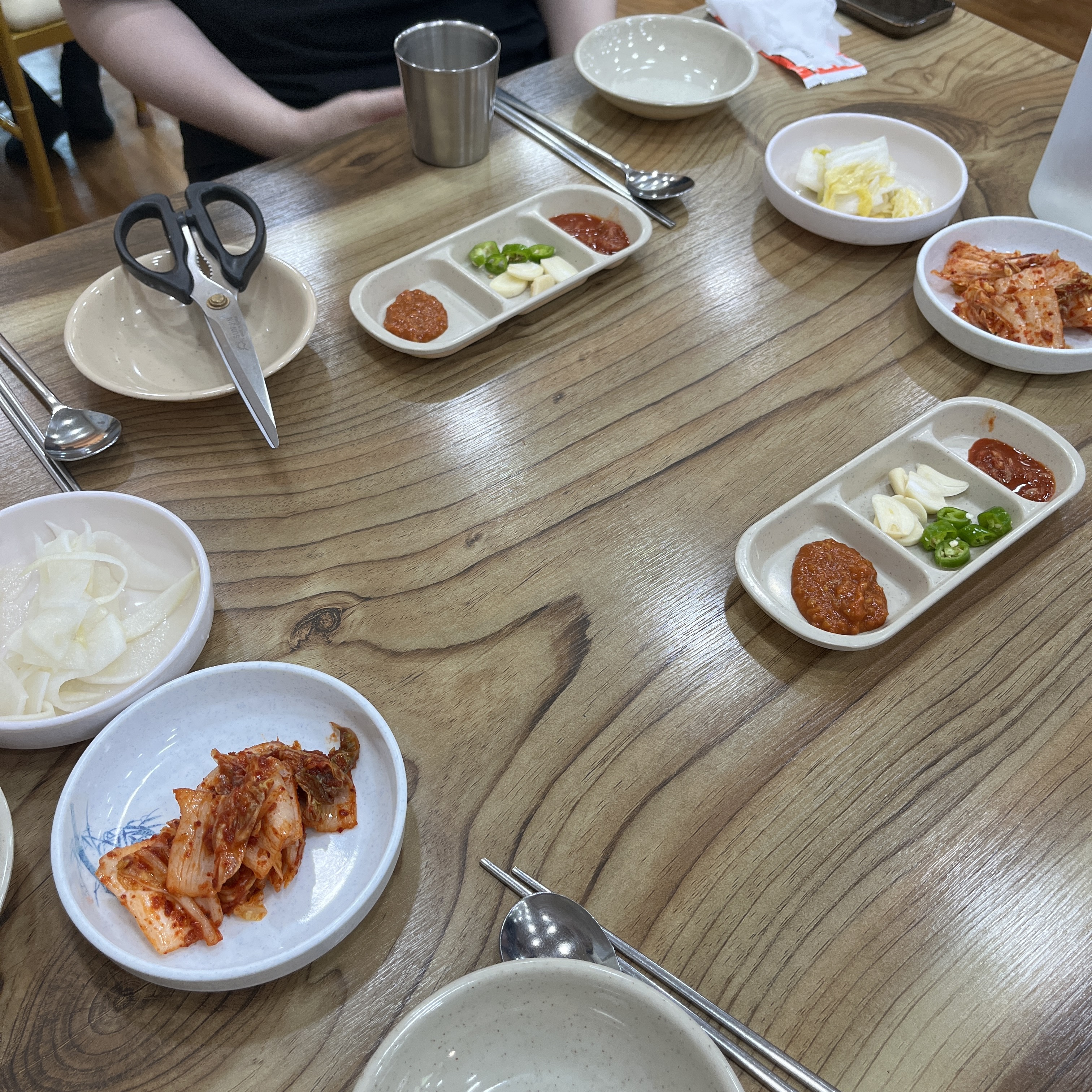 기본으로 세팅은 요렇구요, 쌈장 등은 수육 시켜서 주신 것 같아요.ㅎ