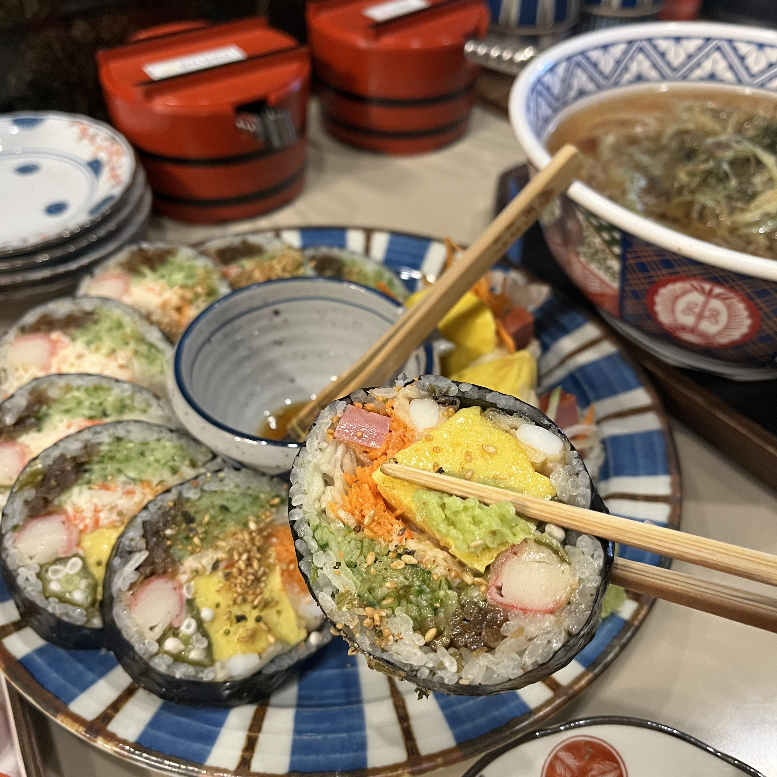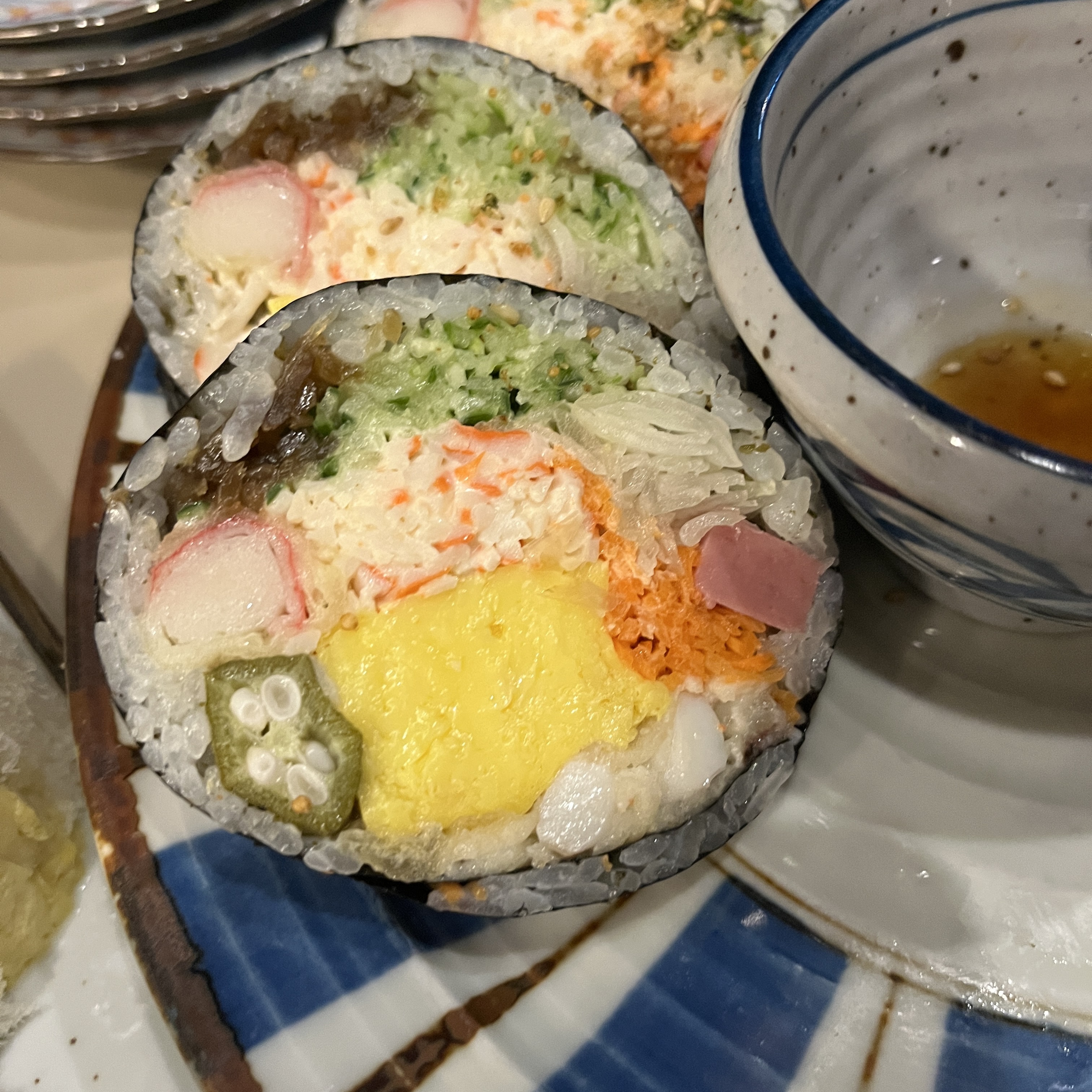 부드러운 식감, 쫄깃한 식감, 바삭한 식감 그리고 야채들의 딱딱한 식감?까지 너무 식감이 재밌는 후토마키였습니다.