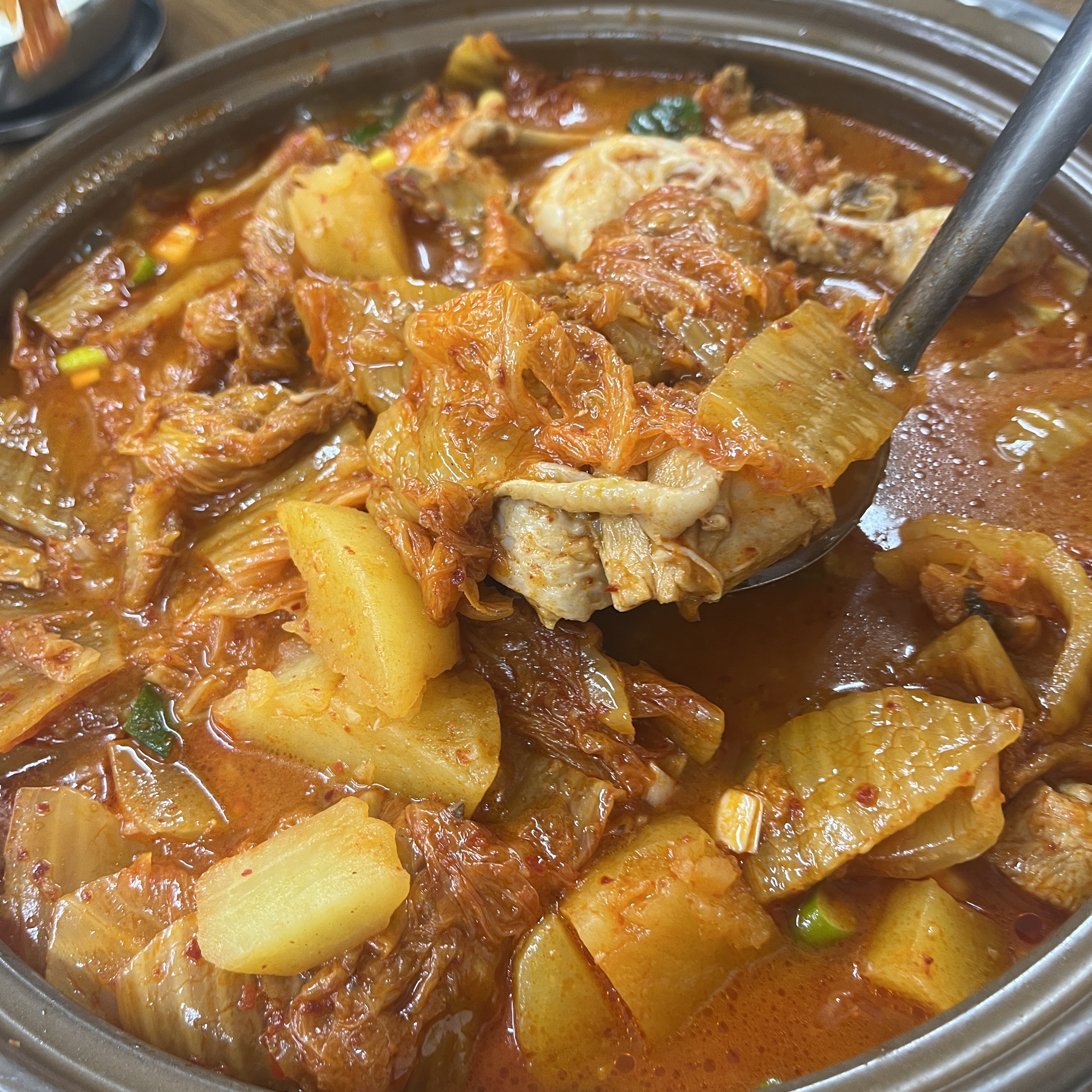 대전 중구 대흥동 닭도리탕 맛집 '풍미식당'입니다.찐하고 감칠맛 넘치는 육수에, 실한 닭고기 살이 부드럽게 잘 찢어지고용,포실포실한 감자까지. 쌀밥까지 더해지면 크으!풍미식당 메뉴입니다.묵은지 닭도리탕과 등갈비 묵은지찜이 있어요.저는 묵은지닭도리탕을 시켰습니다.김치 떄깔 보이세요?아주 제대로된 묵은지에, 국물에 아주 푹~절여진 김치라는게 딱 보이시죠?저는 저 때깔 나는 김치를 좋아합니다.왜냐면 무쟈게 부드러워서, 박박 찢어서 밥 싸먹는 맛이 일품이거든요! 일단 김치 비주얼에서 합격~밑반찬은 아주 간단합니다.계란찜, 김치, 배추무침?, 멸치볶음.그래도 부족하지 않습니다. 닭도리탕 양이 아주 상당하거든요!닭다리살 실한거 보이시나요 ㅎㅎ김치, 닭고기, 그리고 포슬포슬 감자가 듬뿍 보이는게 아주 비주얼은 호감입..