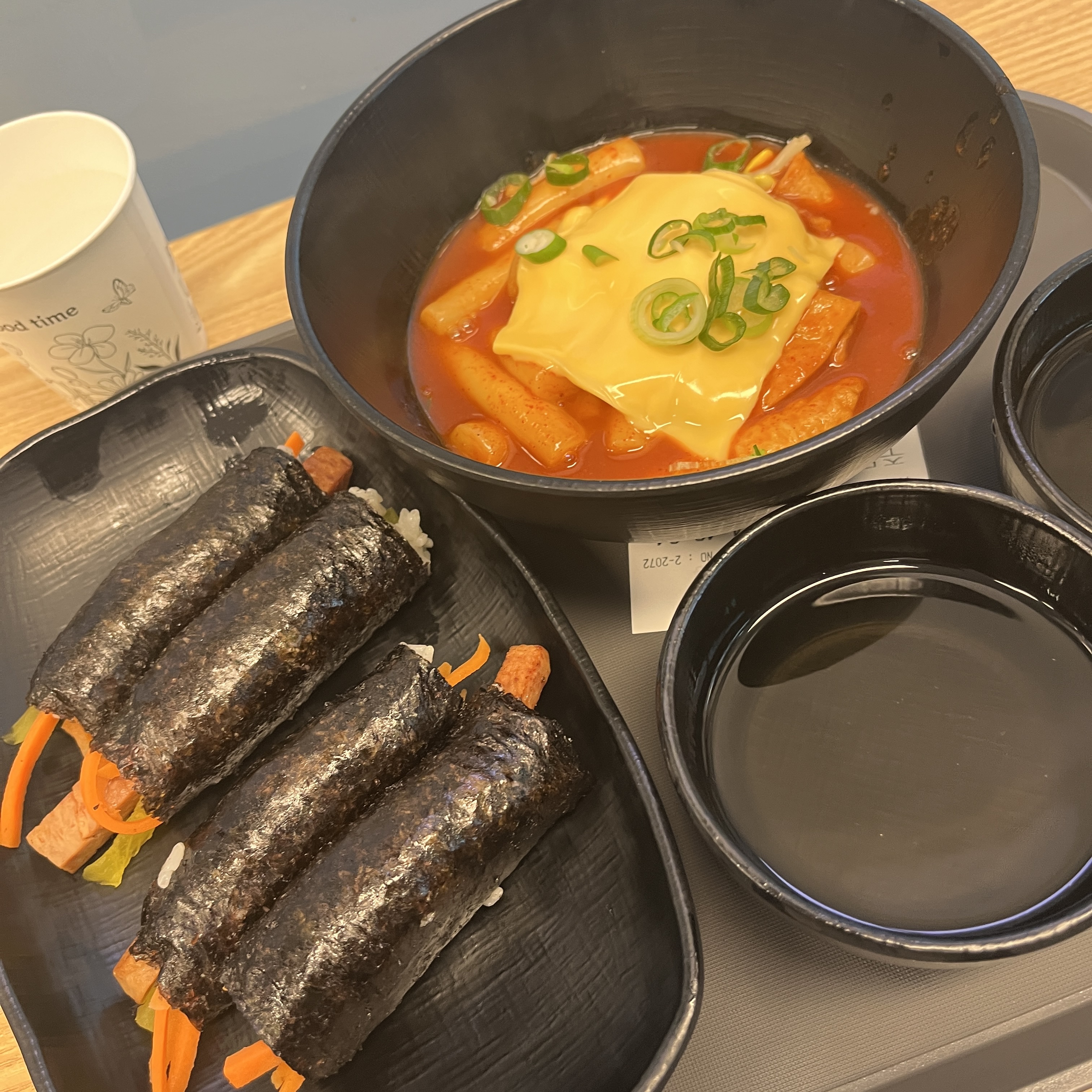 대전역 1층 입구에 위치한 분식집 맛집 '벌꿀분식'입니다.기차를 기다리는 시간에, 혹은 대전에 내리자마자 출출할 때 아주 간편히 빠르게 한끼 먹기 좋은 곳입니다.음식도 빨리 나오고, 가격과 양도 아주 적당합니다~벌꿀분식 메뉴입니다.키오스크에서 주문하시는 시스템이에용.저는 스팸꼬마김밥과 치즈떡볶이 시켜봤습니다.요래 두개 시켜서 둘이서 나눠먹어도 총 11,500원밖에 안나옵니다.스팸김밥과 치즈떡볶이입니다.음식은 미리 만들어두셨는지 꽤나 금방 나왔습니다.김밥은 꼬마김밥 4개가 제공됩니당.기본 반찬은 분식집 답게 배추김치와 단무지가 제공되요 ㅎ스팸김밥은 런천민트 이런게 아니라 진짜 스팸이 꽤나 두껍게 썰려서 꼬마김밥 처음부터 끝까지 들어있습니다.스팸 좋아하는 분들에겐 아주 럭키한 구성!꼬마김밥 특유의 쫀득함도 ..